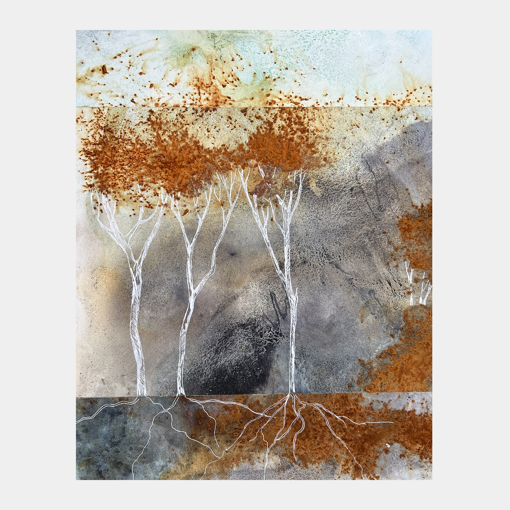 Roest, koperoxide en inkt op papier, gelijmd op multiplex – Bekijk de hele serie