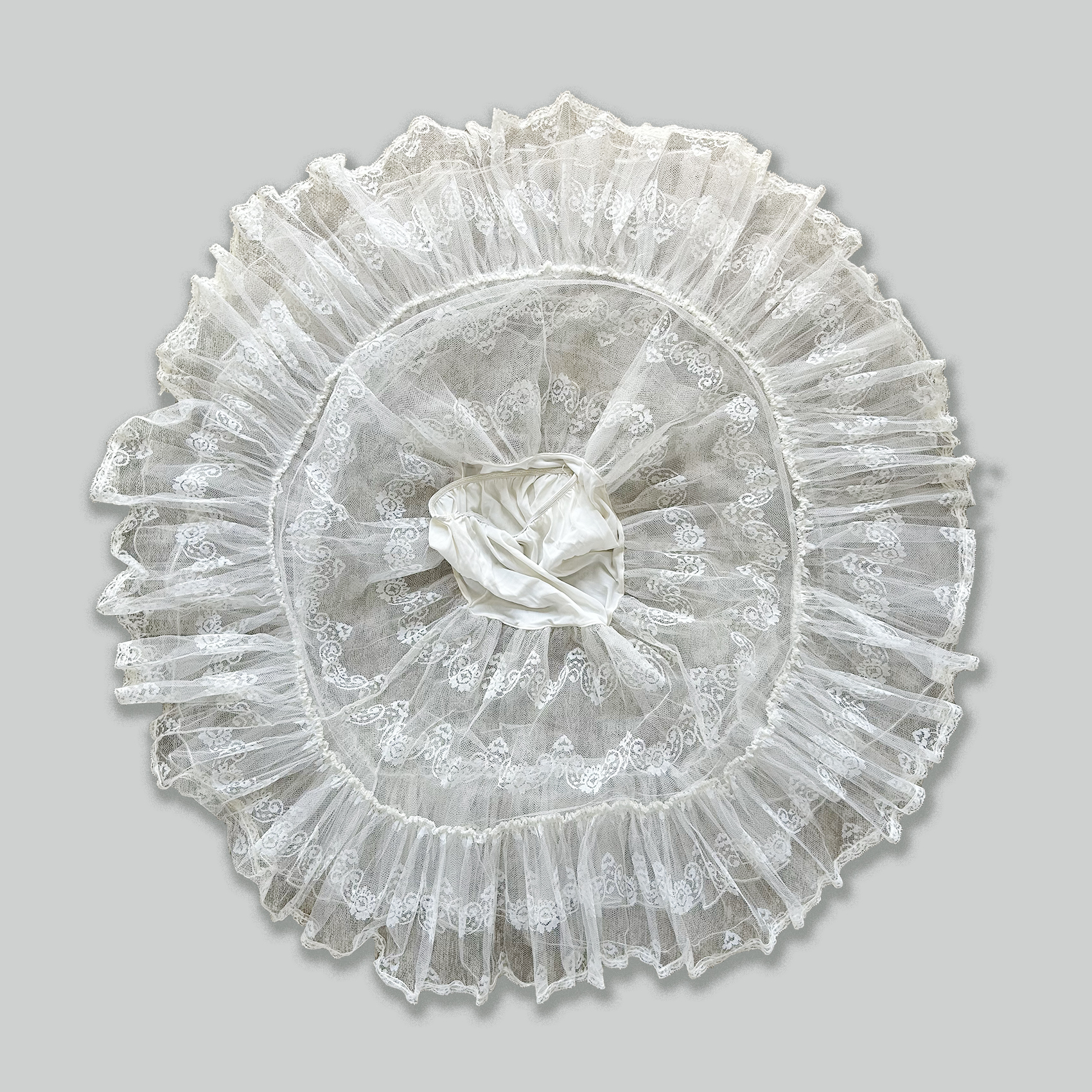 Foto van een onderjurk geprint op plexiglas, contour gesneden.